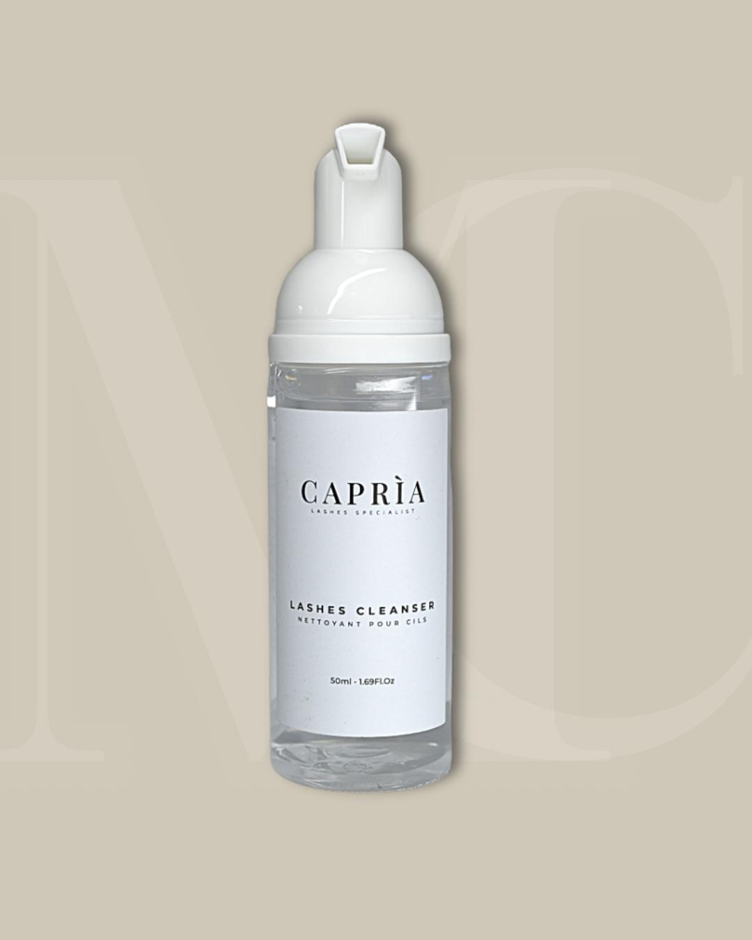 La mousse nettoyante Lashes Cleanser by Caprìa purifie les cils naturels et les extensions de cils avec une douceur exceptionnelle. Sa formule douce élimine les impuretés, l’excès de sébum et les résidus de maquillage sans irriter la peau ni altérer la tenue de la colle. Tu obtiens un nettoyage précis, rapide et sécurisant, même pour les yeux sensibles ou réactifs.